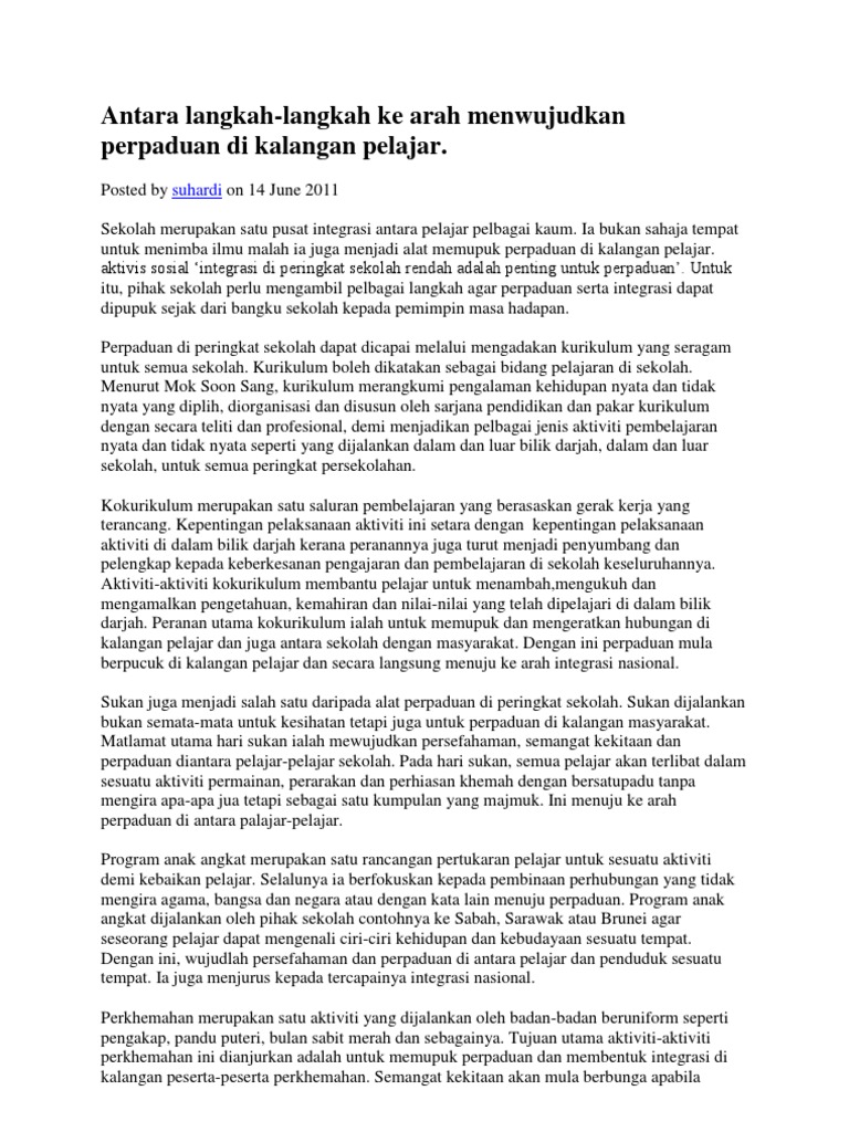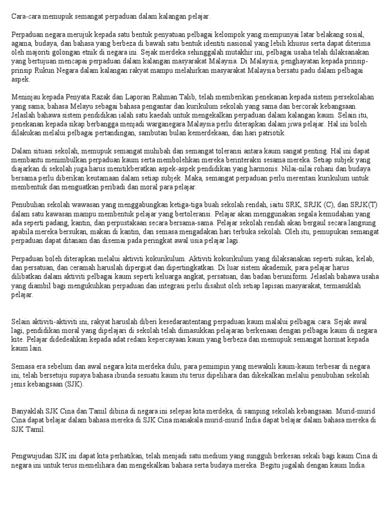 Karangan Cara Cara Memupuk Semangat Perpaduan Dalam Kalangan Pelajar Pdf